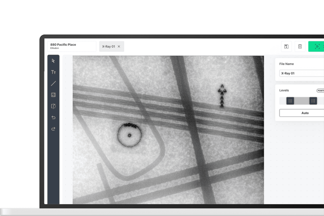This is where the Digital X-ray becomes useful to the client and field crew. The goal is not just to collect an image and give you peace of film. The goal is to turn that image into a usable markout on site and provide a report with site photo and X-Ray image as a proof.